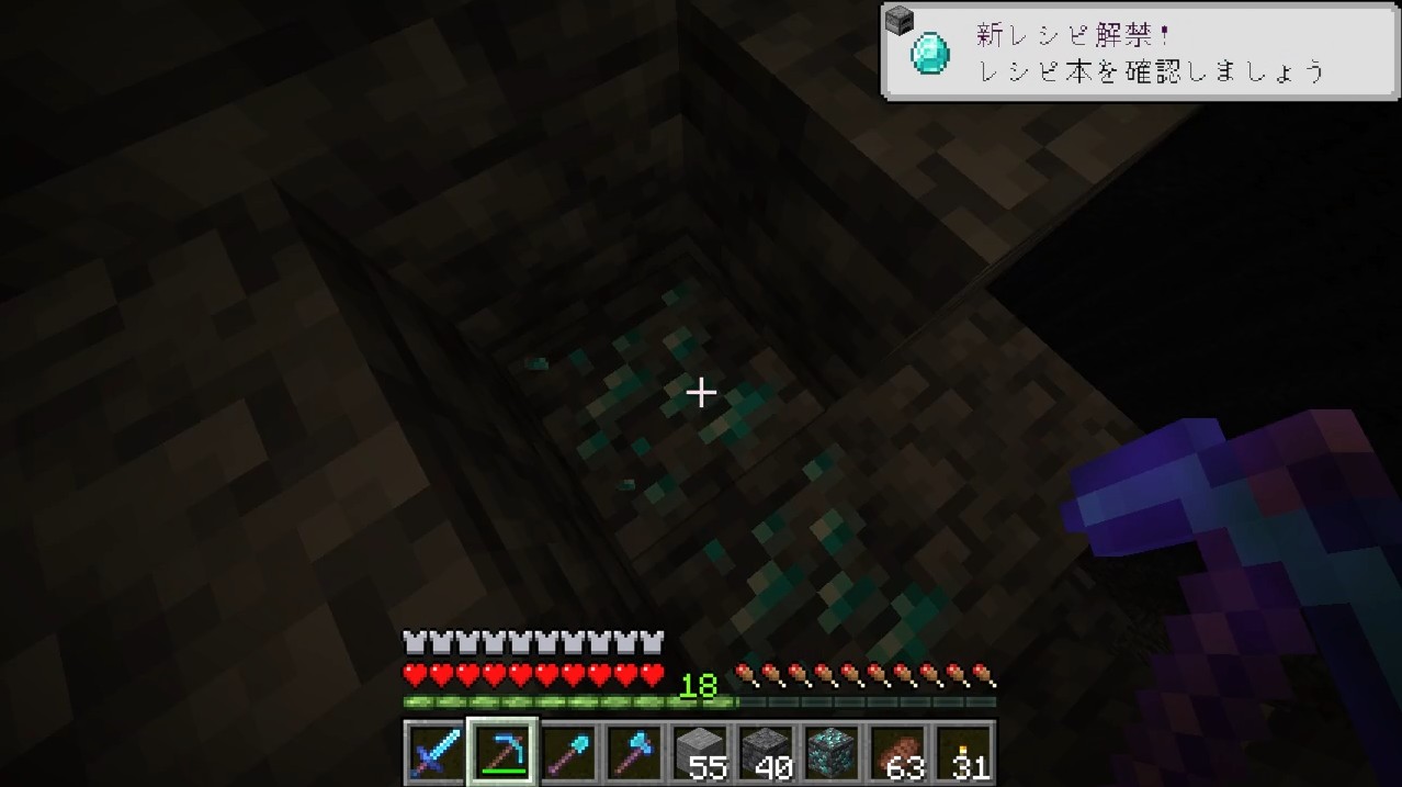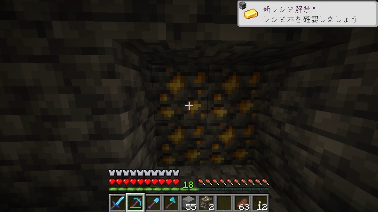 仕方がないので、スポーン地点の近く、初期に鉄を求めて潜ったところを、さらに奥へと向かうことにしましょう。