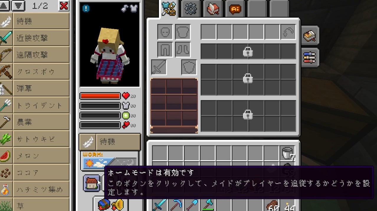 そろそろ洞窟探検に行こうかなと思い、「Touhou Little Maid」というMODのフォロワーである、小傘のインベントリを拡張しようと思いました。