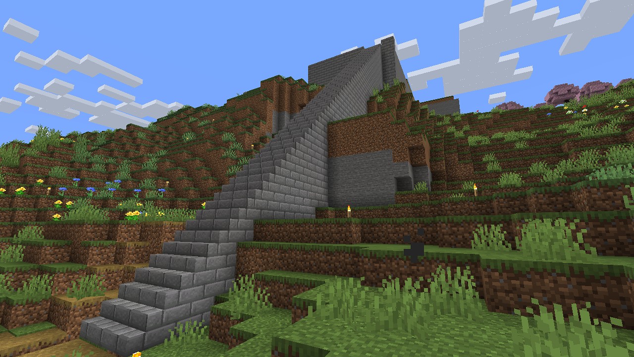 階段を砦の間から伸びる階段を作ってみたら、結構高度があったらしくて、かなり長い階段になってしまいました。