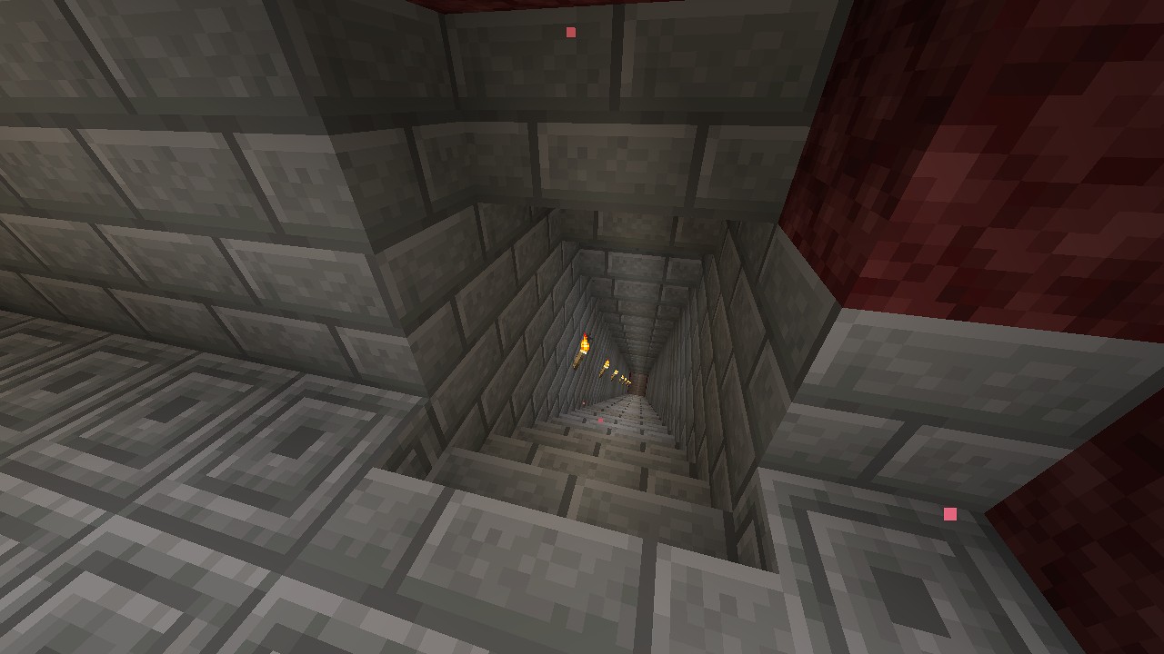 通路の高さは94ですが、ネザー要塞の場所の高さは67なので、30ブロックほど階段で降ります。