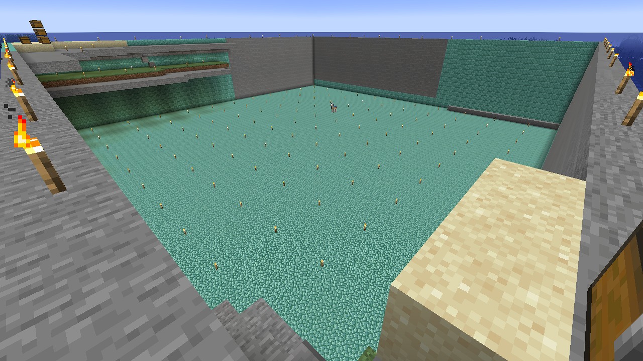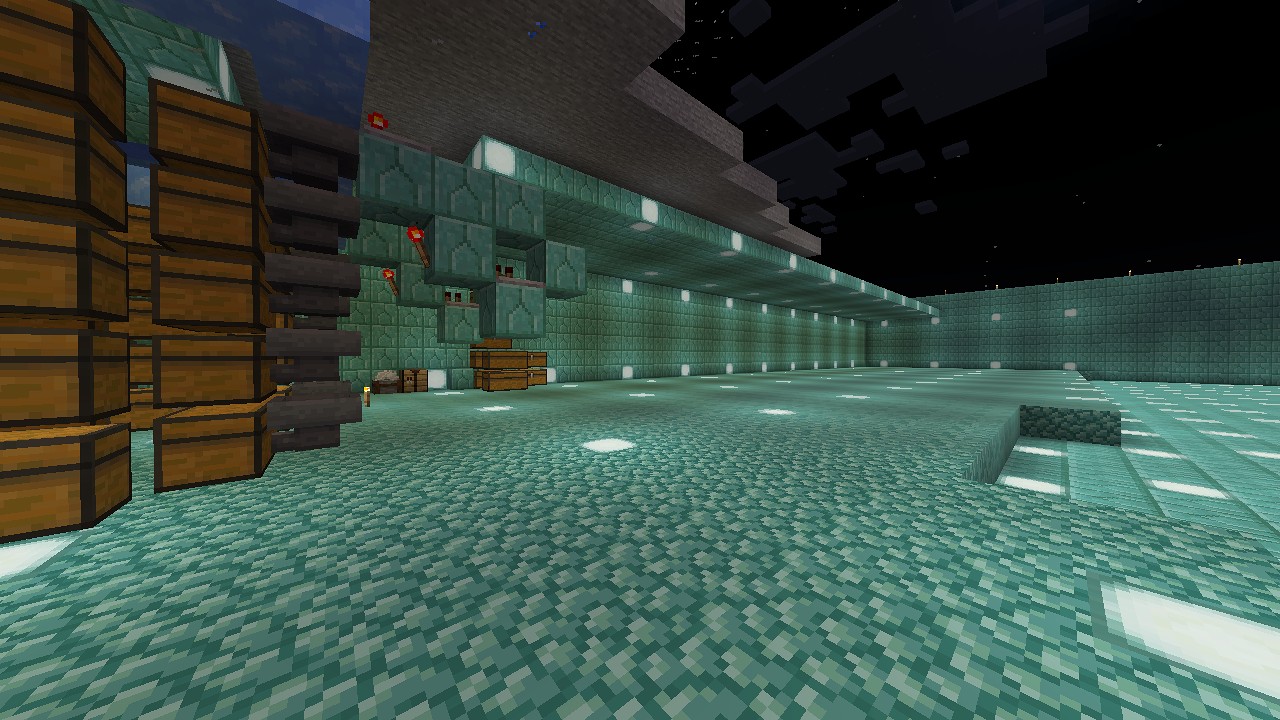 実は最初は全てをプリズマリンレンガで作っていたのですが、変化が欲しくなって作り直しました。