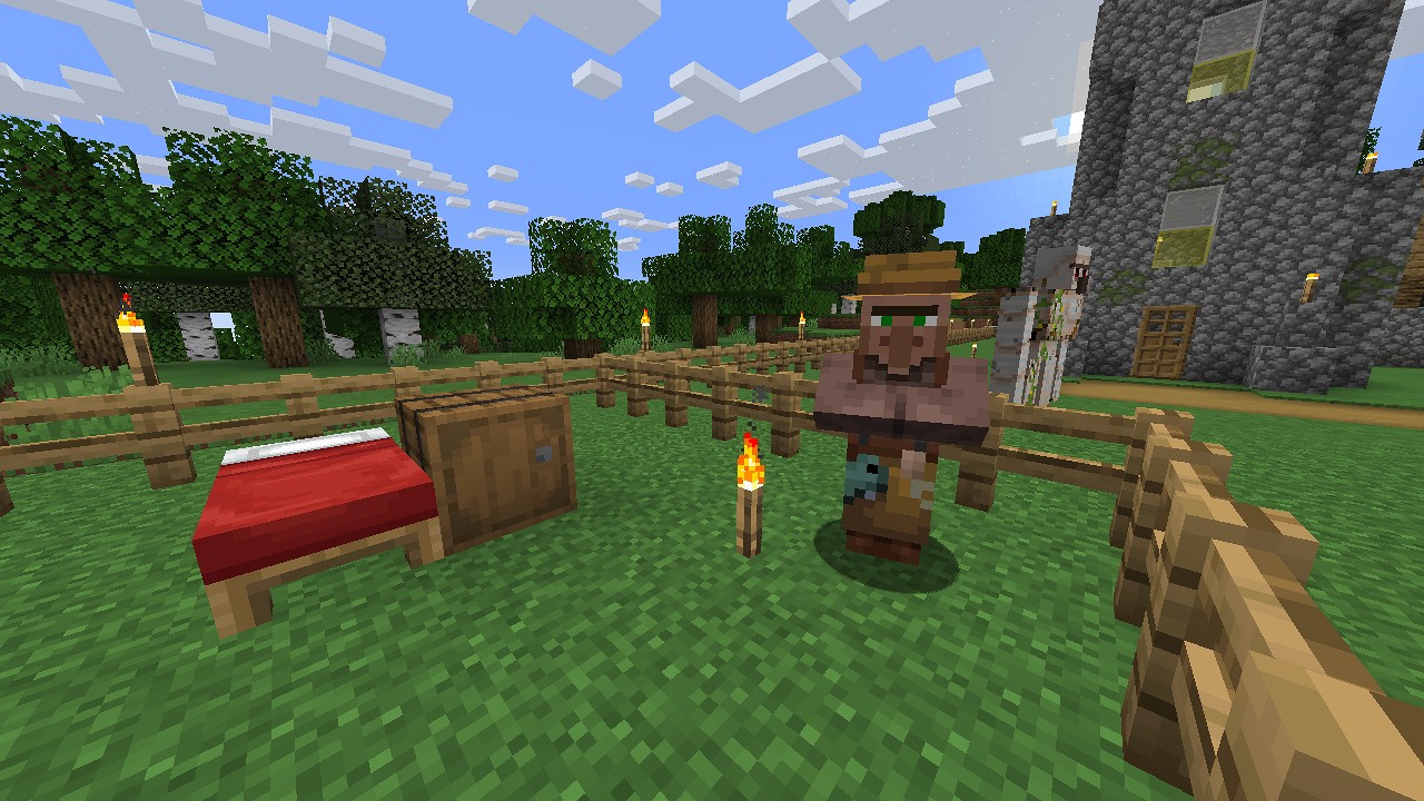 この漁師を海底神殿跡の地上に待機させて、生鱈をエメラルドに交換してもらいます。