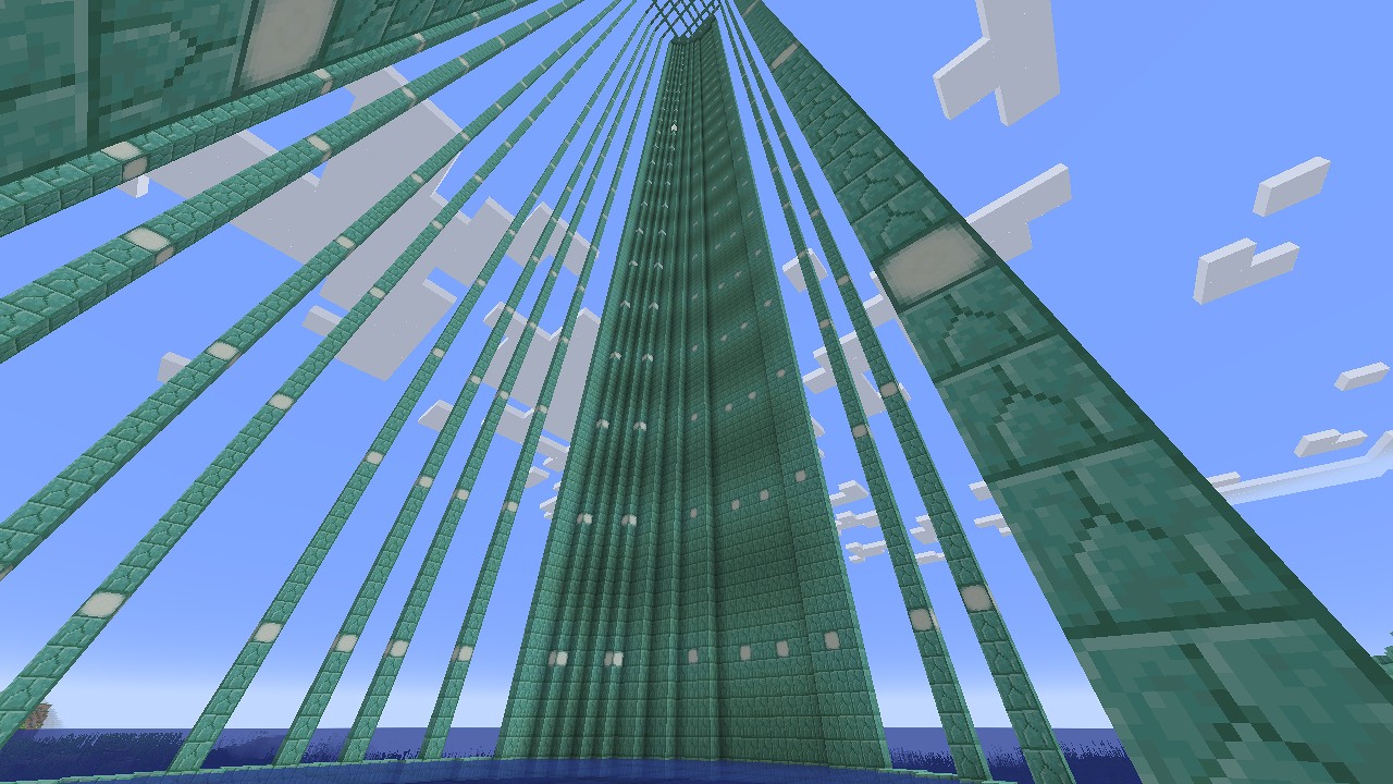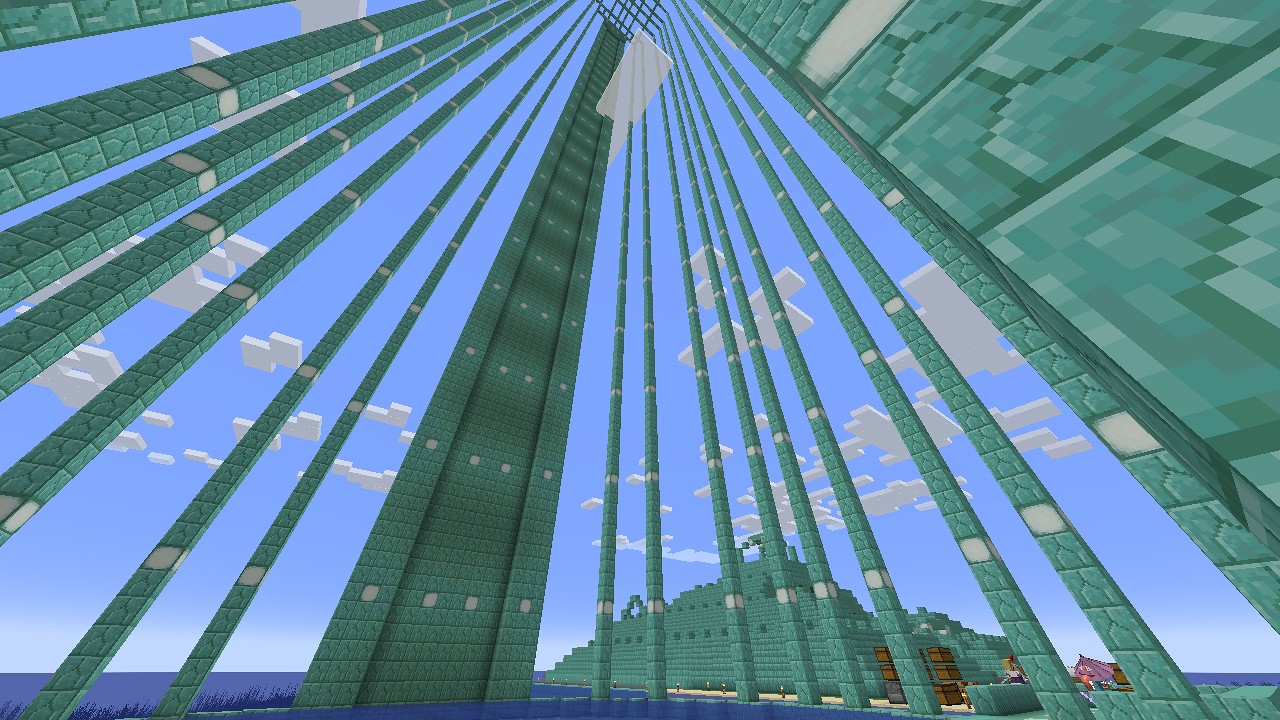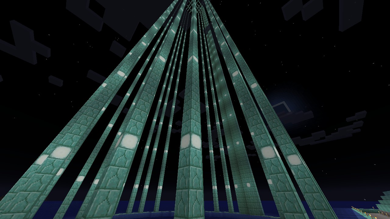 この日の作業で、プリズマリンタワーの光源となるシーランタンを含む列を、柱状に仕上げ終わりました。
