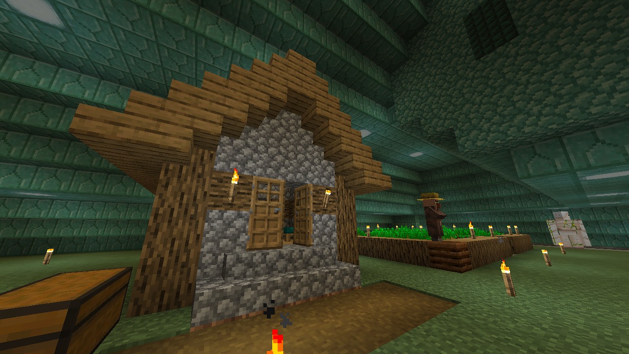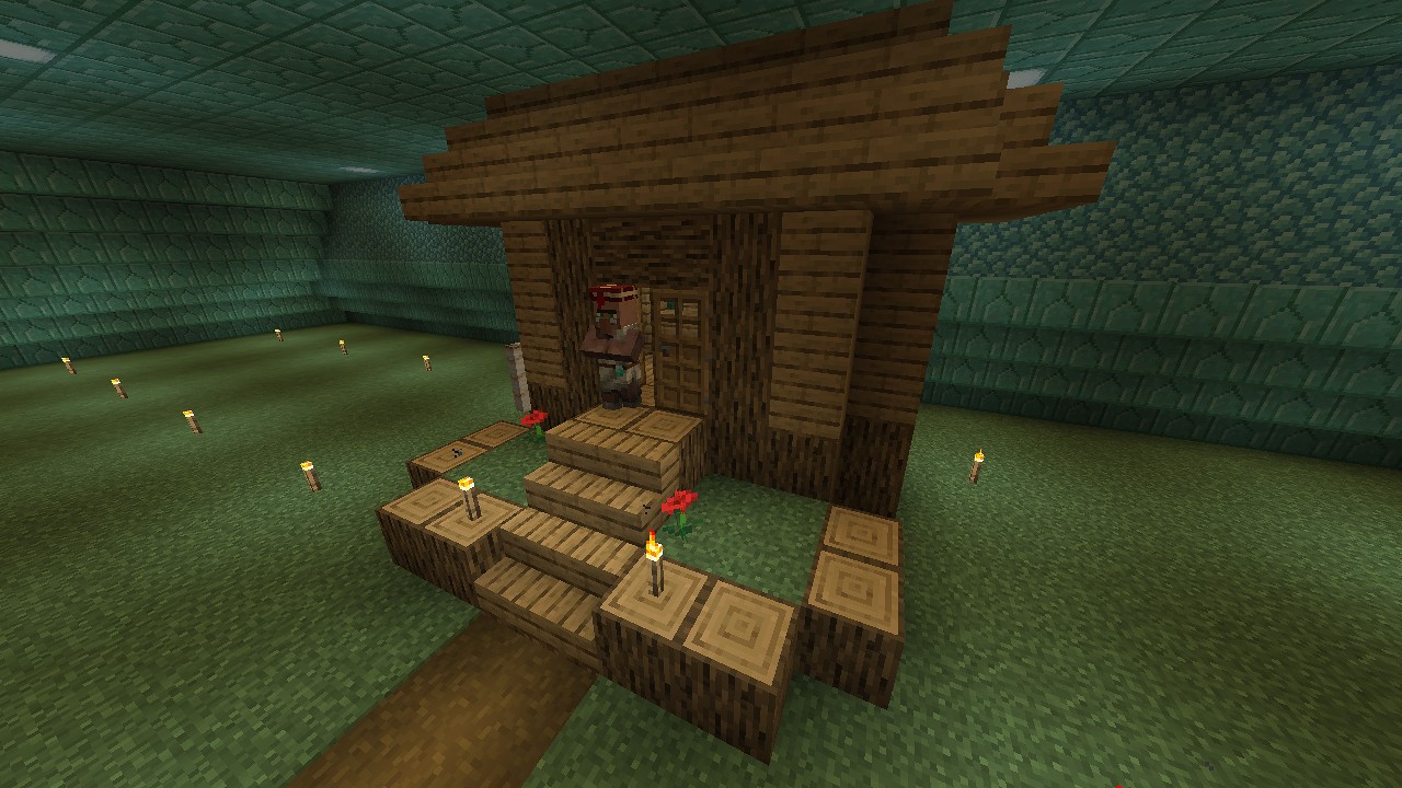 二階建てを建てられる高さが無いので、一階建てになるサバンナの図書室を、オークの木を使って草原風にリメイクしました。