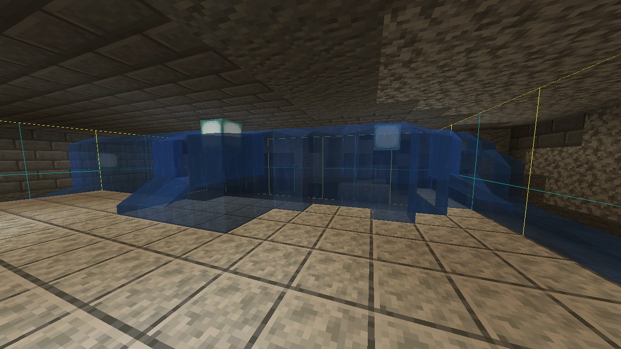 スライムチャンクを確認しながら掘っていますが、ここでも地下深く掘ると地底湖にぶつかるという事態が発生しています。