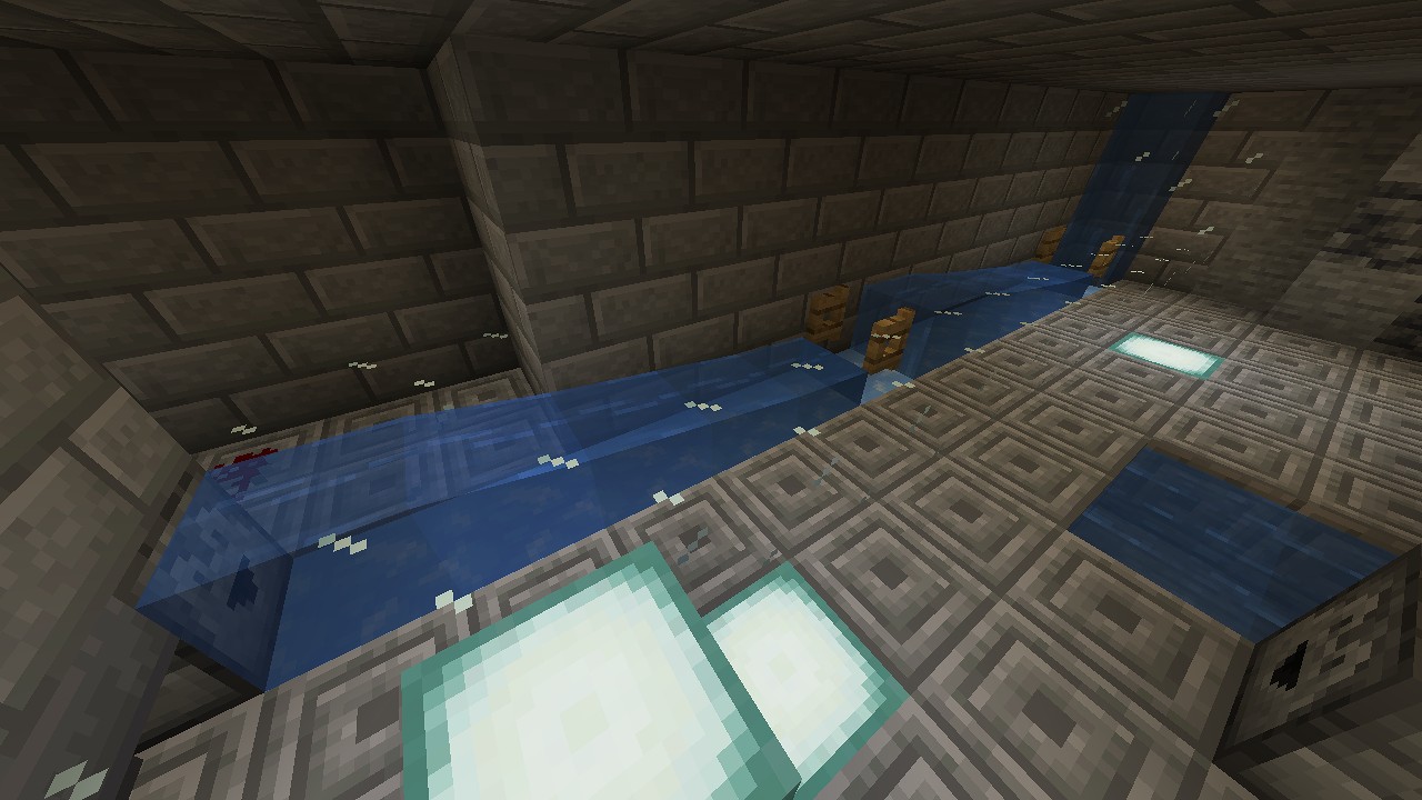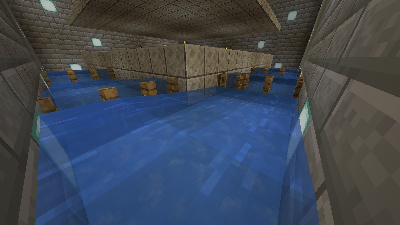 次は水流でスライムを処理層に誘導するシステム、処理層で生成されたスライムボールを地上に輸送する経路を作っていきます。