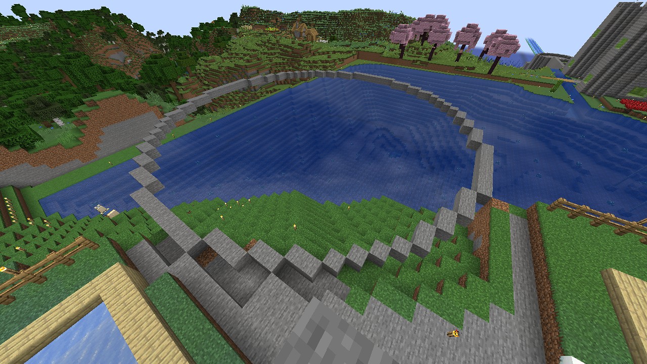 今日の作業で、堀を作って水の塔の準備も進めておきました。