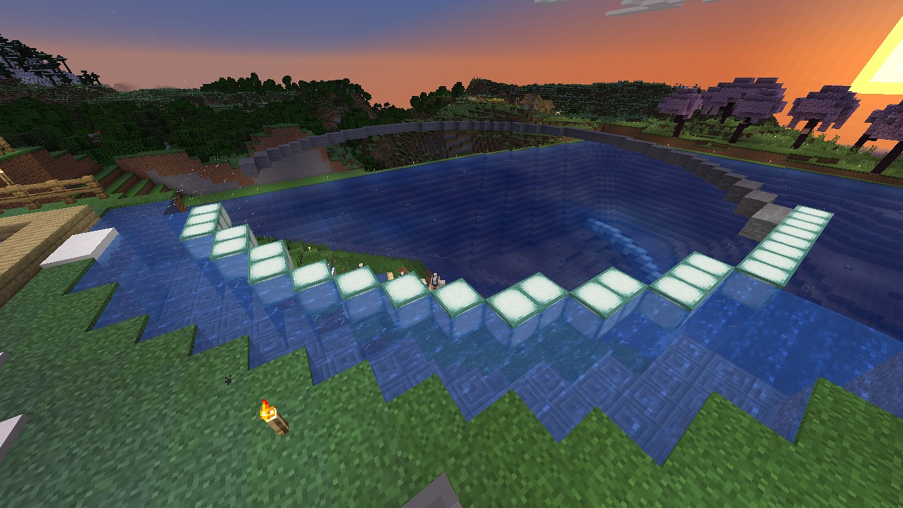 10ブロックか20ブロック置きにシーランタンの層を作って、明るい縞模様になったらいいかな、と考えています。