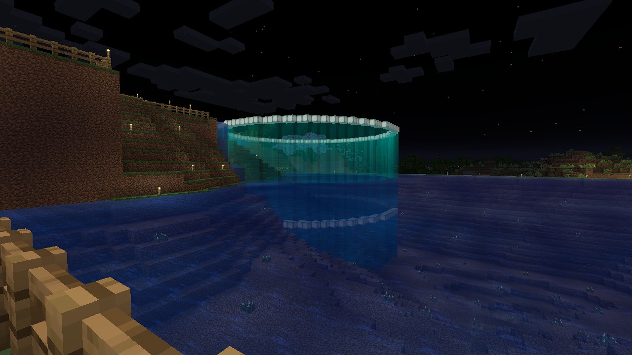 青氷の橋は、アイアンゴーレムトラップから海底神殿までの支柱が完成しました。
