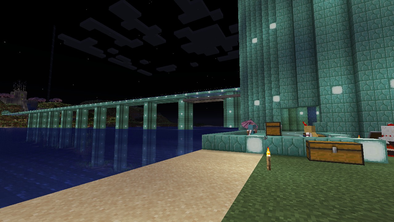 だいぶん海底神殿側に近づいたので、9月中には橋作成を終えられたらきりがいいかな。