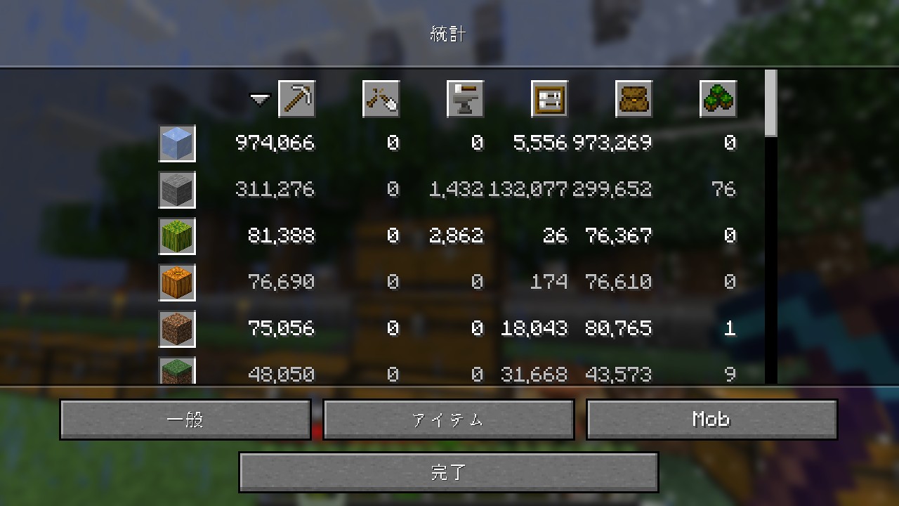 統計で見た青氷の作成数は、10740個になっています。