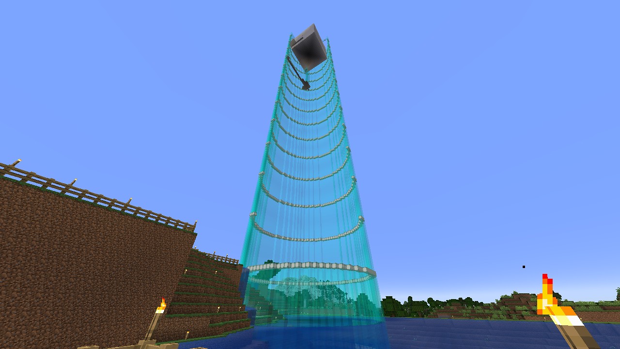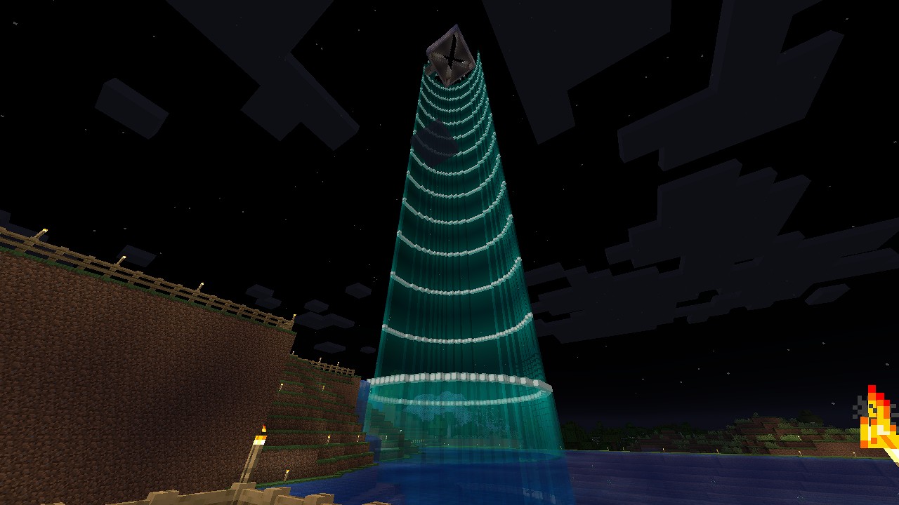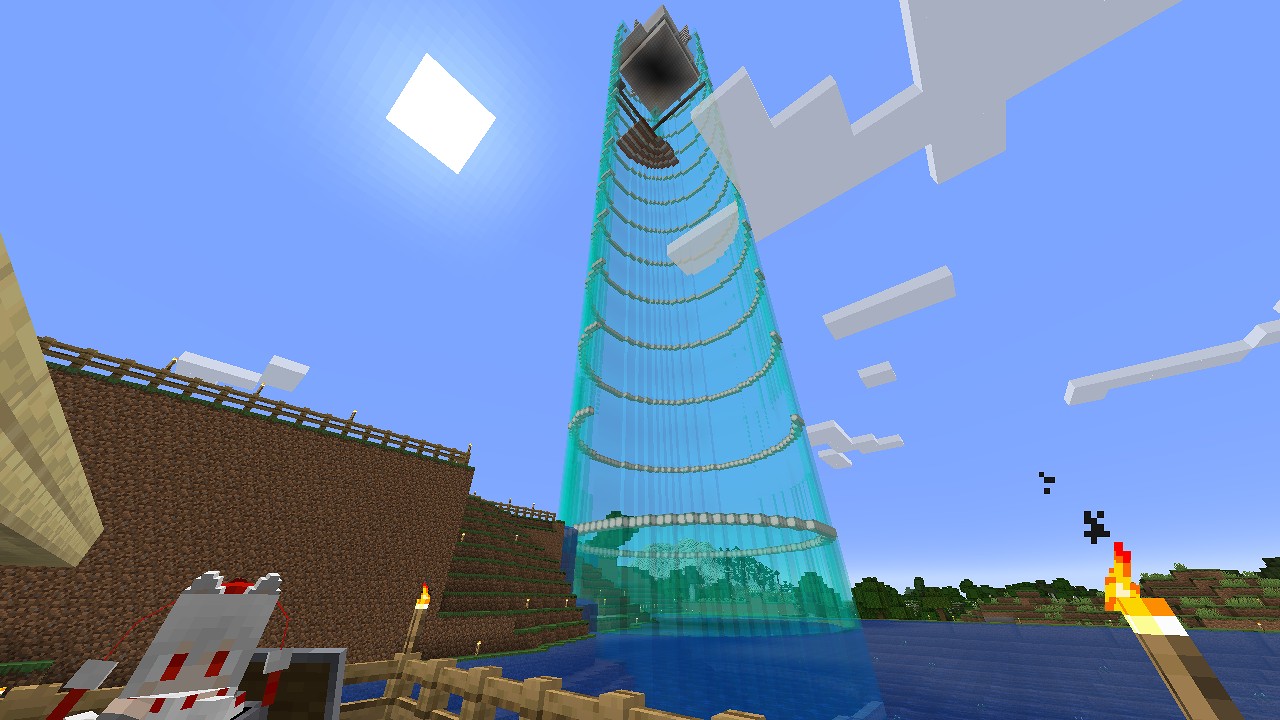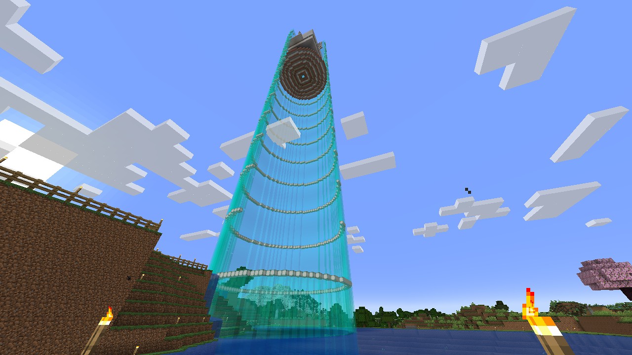 今回から、最初の拠点の裏庭に作っているガラスの塔に、天空トラップを埋め込んでいきます。