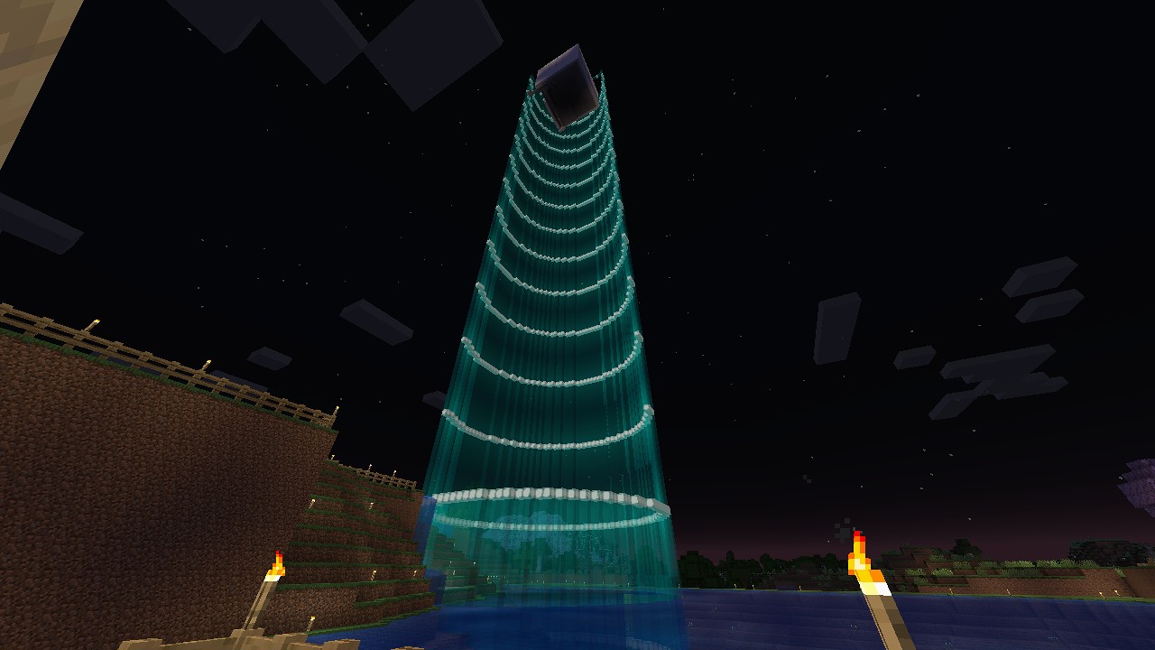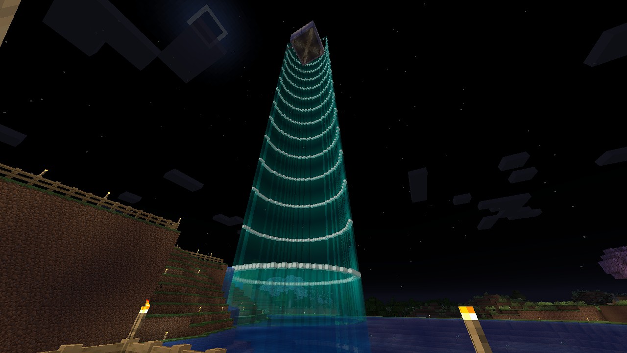 処理場をちょっと作り始めましたが、塔の内部に立方体が浮いています。