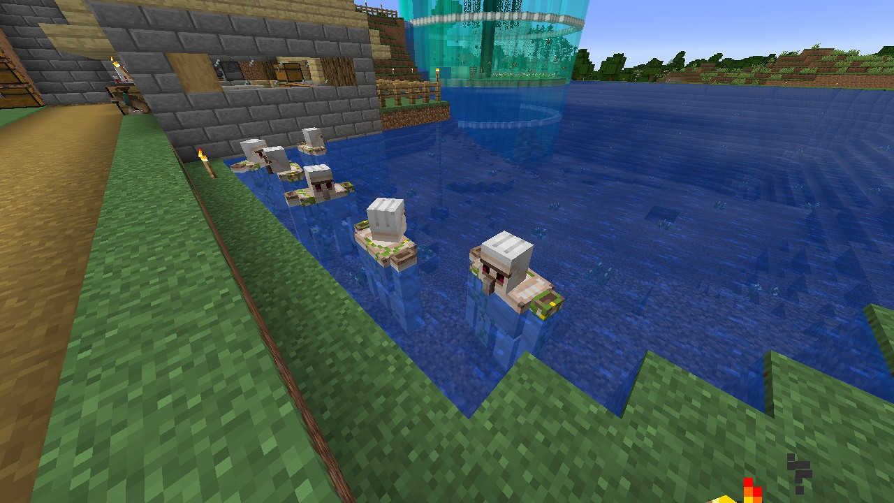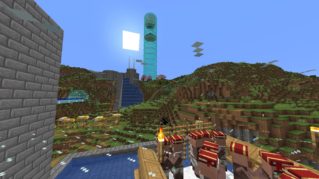 撮影地点を変えて、初期スポーン地点付近にあるアイアンゴーレムトラップから眺めてみました。