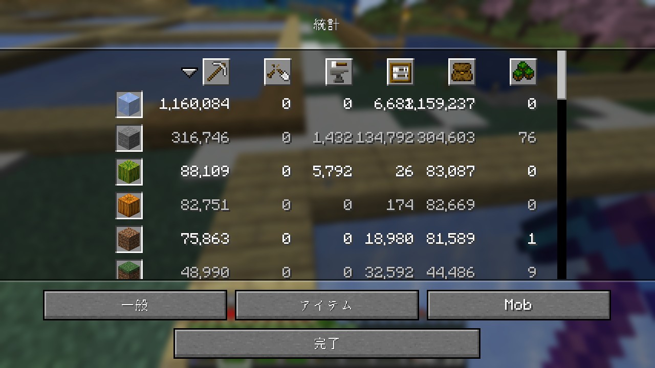 統計で見た青氷の作成数は、13264個になっています。