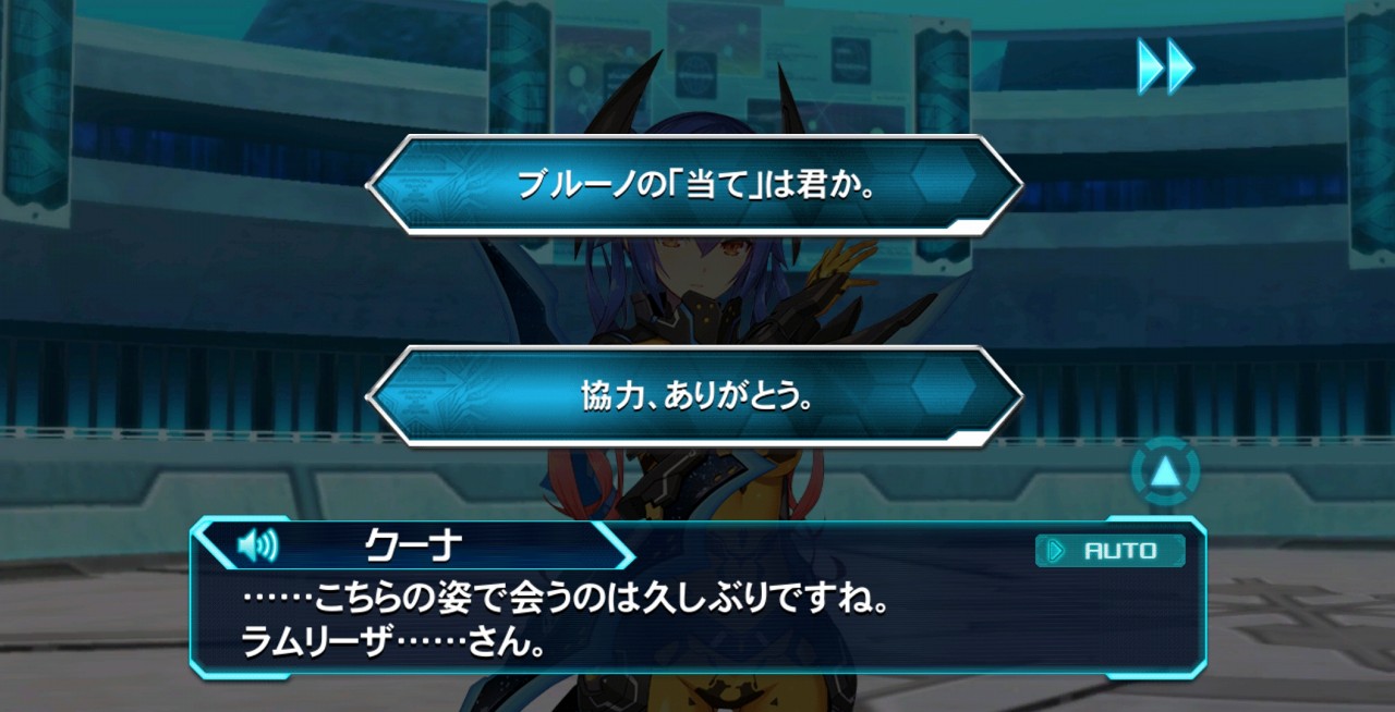 ここで選択肢、クーナからこちらの姿で会うのは久しぶりですね、と言われました。