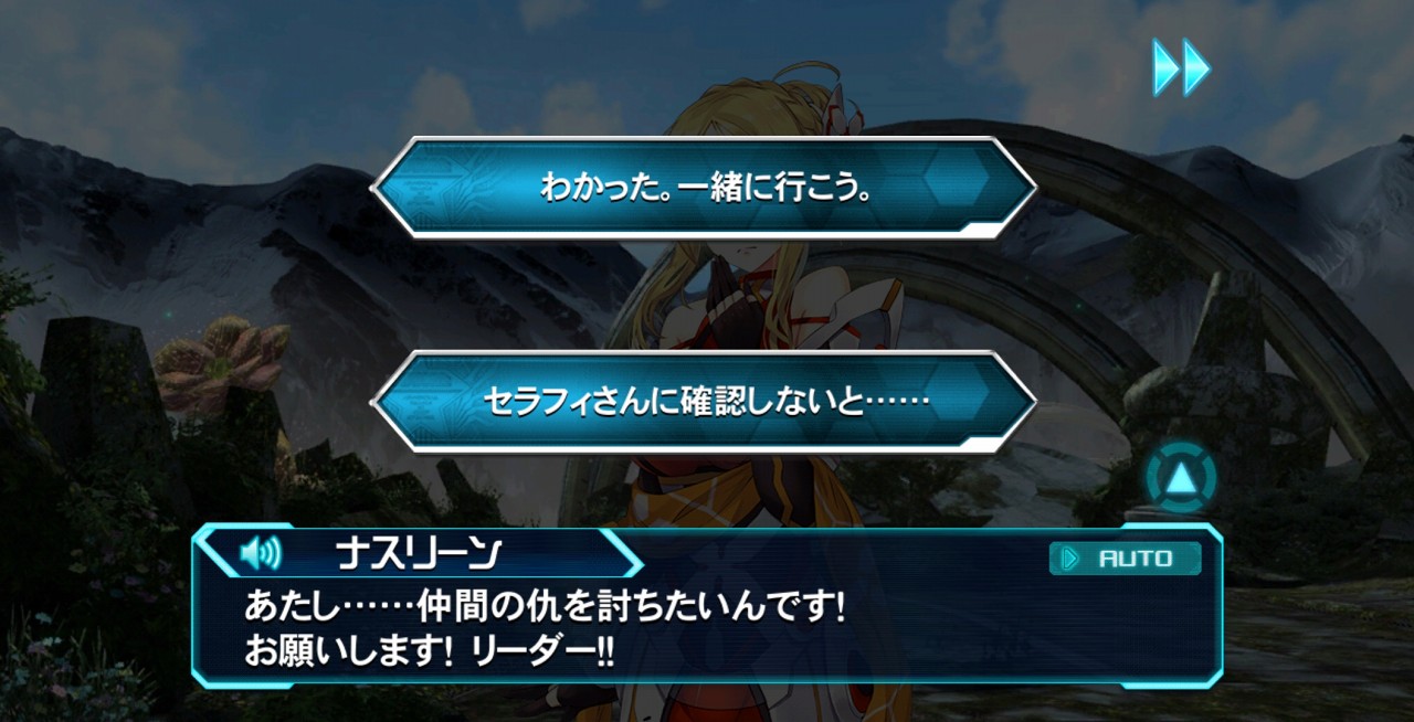 セラフィの確認により、彼女はナスリーン、第二研究所奪還作戦に参加している、アークスのテクターだということが分かりました。